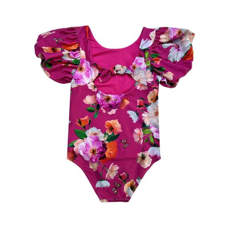 Trajes de baño paraniños de la manga de la letra del estampado floral